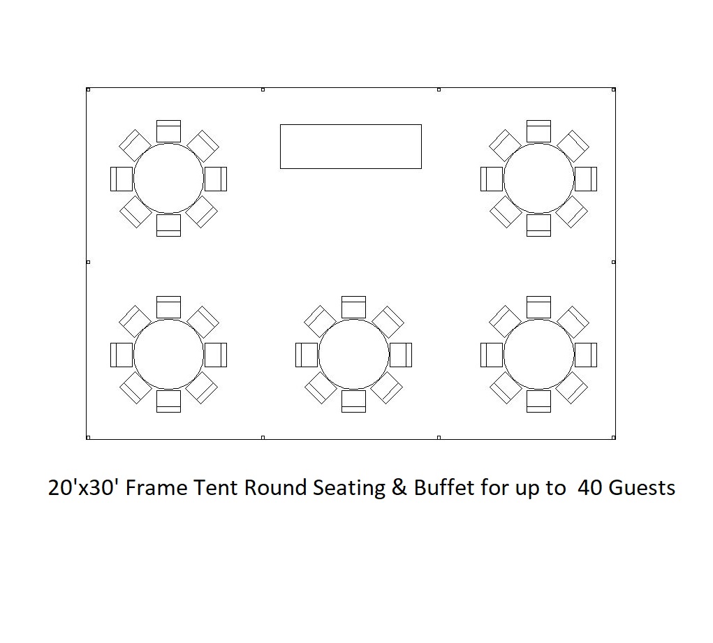 Diagram and Seating Chart of a 20x30 Frame Tent with Round Table Seating for 40 guests