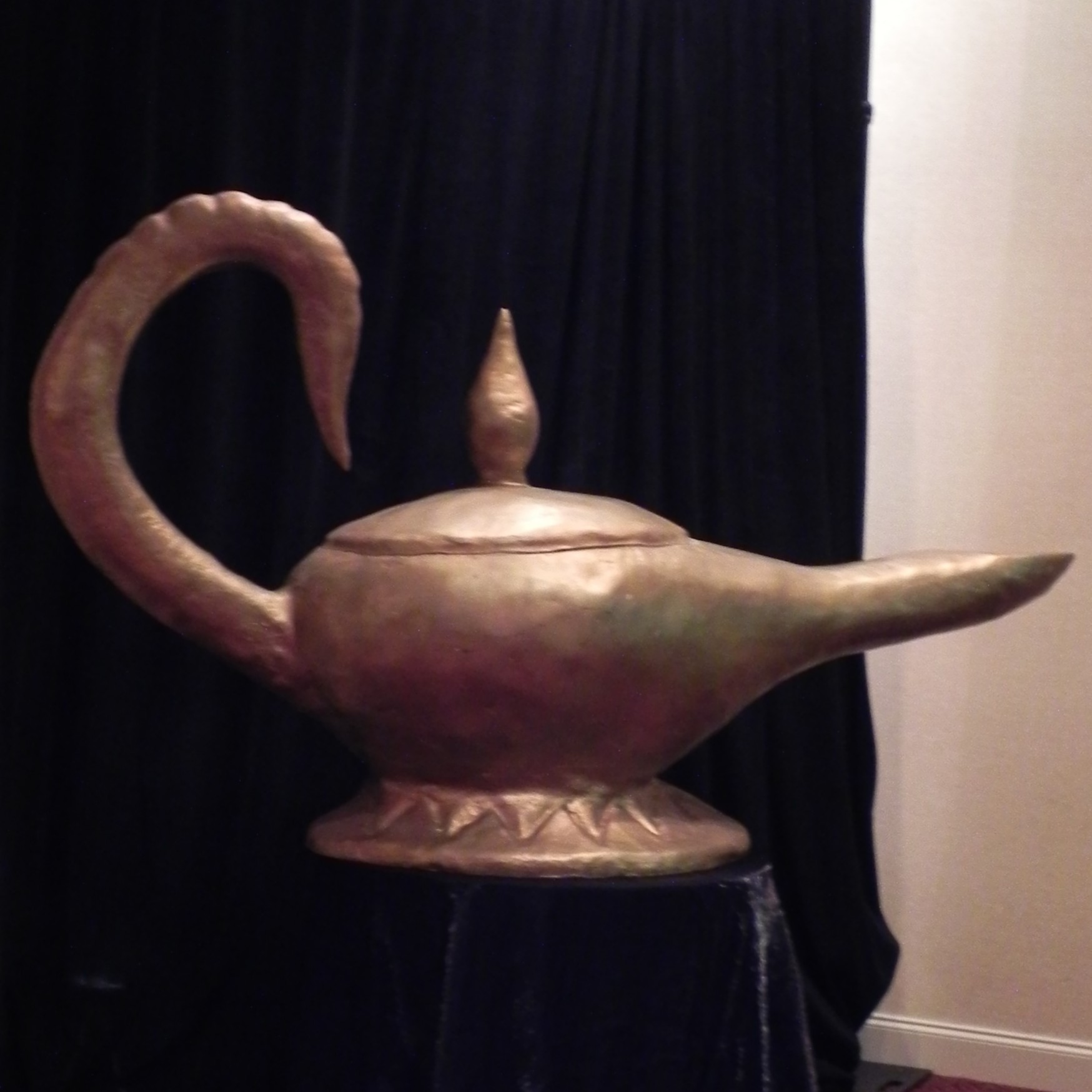 Description: Make a grand entrance with this larger-than-life genie lamp prop—stretching nearly 7 feet wide and guaranteed to steal the spotlight! Perfect for themed events, parties, and immersive décor setups, this eye-catching piece brings a touch of magic, mystery, and Middle Eastern flair to any space. Whether you’re creating an “Arabian Nights” vibe or just want a jaw-dropping statement piece, this lamp is ready to spark imagination… no rubbing required!