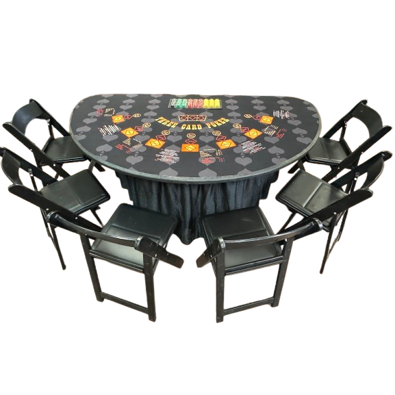 - The following items are available at an additional cost: dealers, chips, table skirt, chairs, coasters